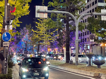 暖かいですが、もう街の街路樹にはイルミネーション