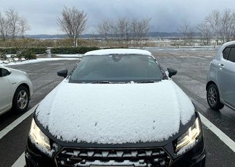 朝外へ出るとうっすらと雪