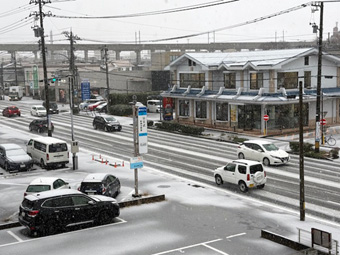金沢市内事務所近郊は道路も建物の屋根も真っ白