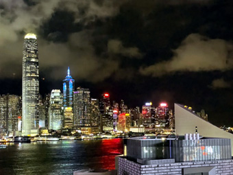 九龍の香港島が見渡せる上海料理店のテラスから