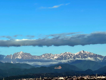 富山県に入りしばらくすると車窓からは優雅な立山連峰が