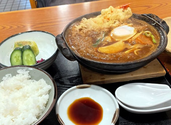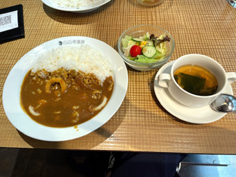 画像の私の頼んだシーフードカレーとサラダスープセット